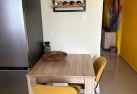 De keuken is volledig uitgerust met alle benodigde apparatuur en keukengerei om thuis te koken. Aangrenzend vind je een praktische eethoek die ook goed dienst kan doen als werkplek.